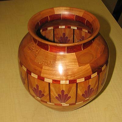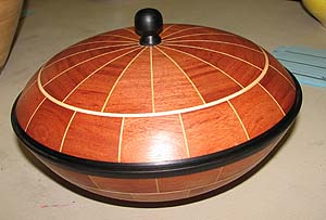 ![]() English Sycamore, Walnut, Bloodwood, Mahogany 10" diameter and height August 09 Contest winner March 10 |