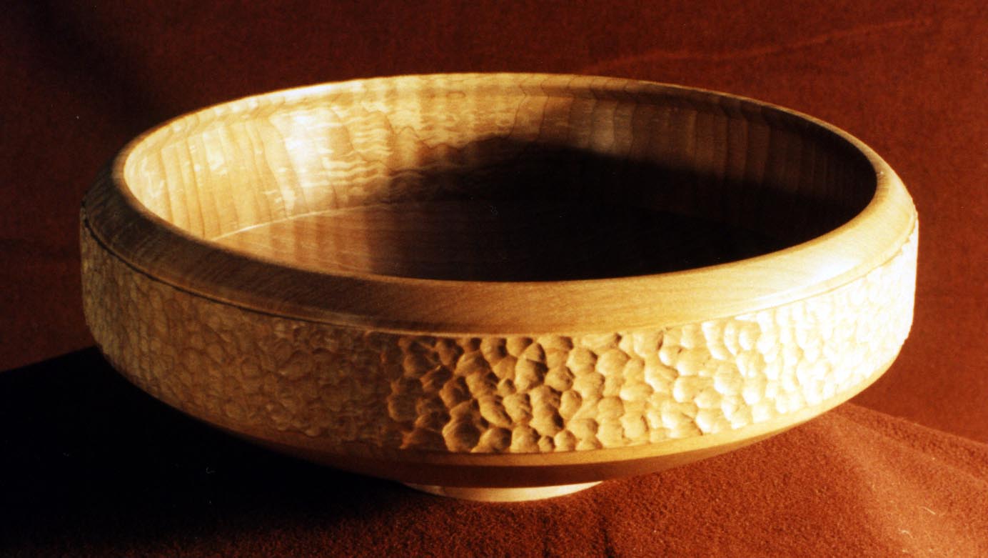 Maple![]() Curly maple bowl with carved/textured circumference (10” Dia x 4” High). |