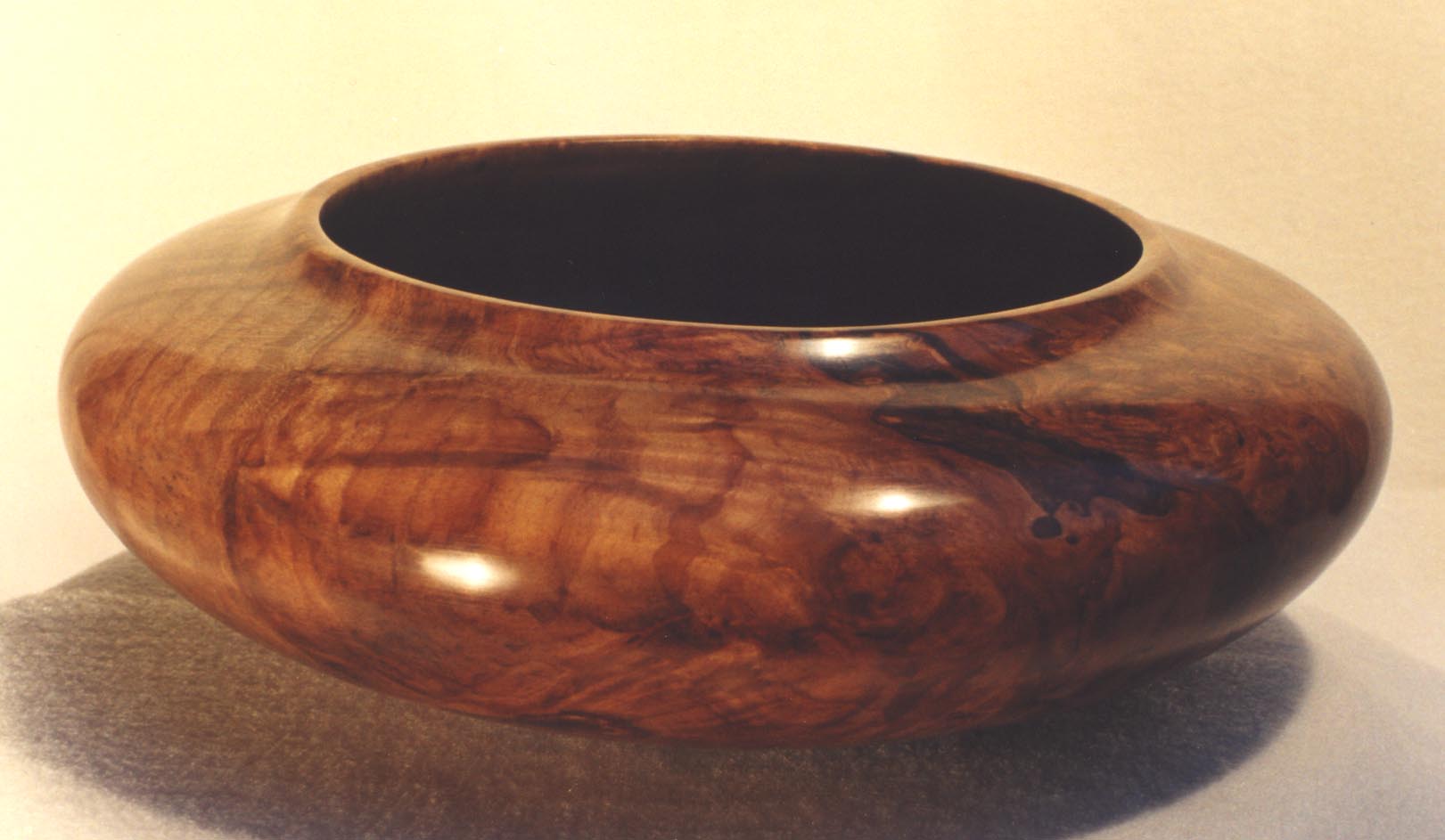 Southwest pueblo pottery form. Big leaf maple. 13.5 inch diameter x 7 inches high. |