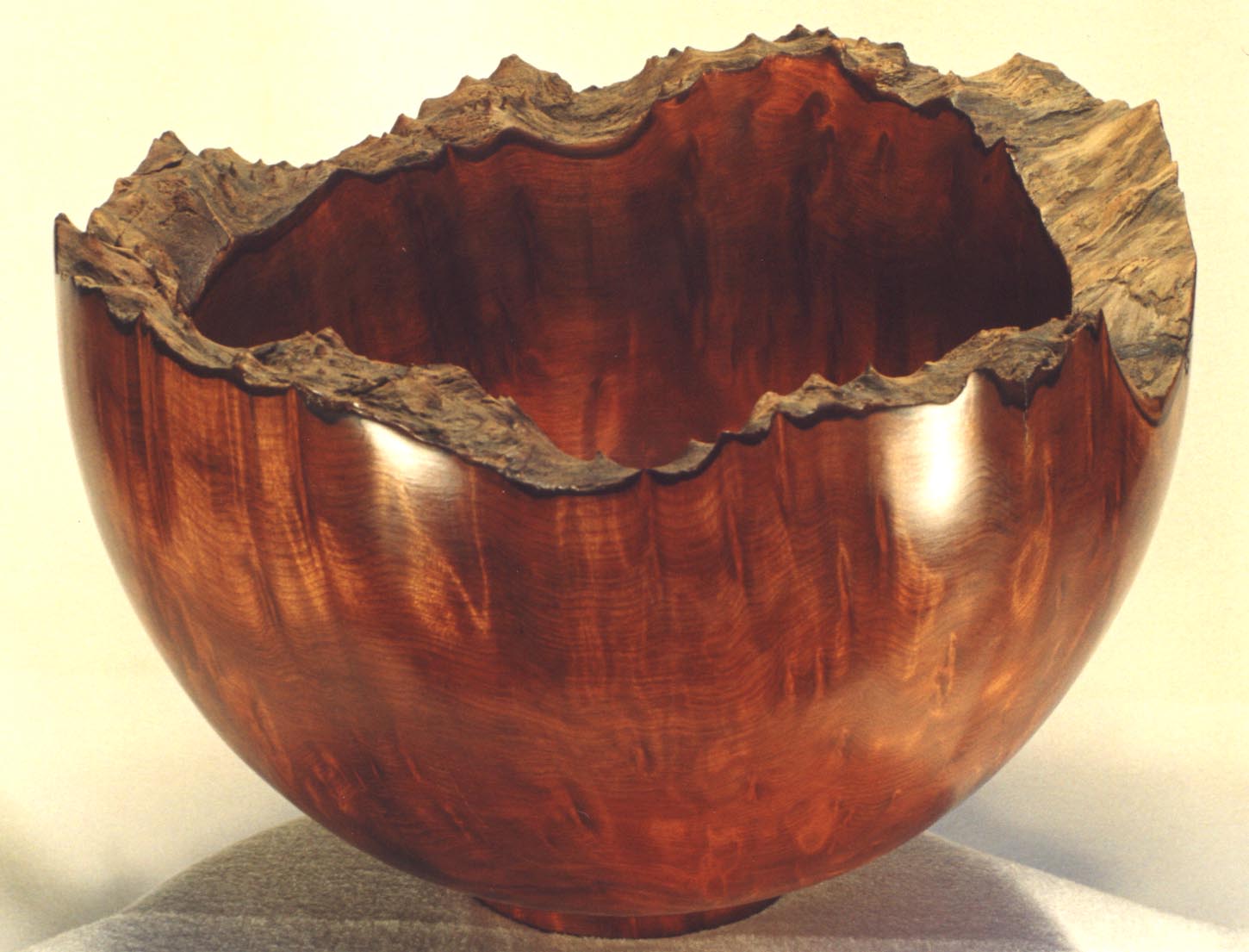 CherryPolished Carolina cherry burl closed form with natural edge finial (9.5” Dia x 8” High). |