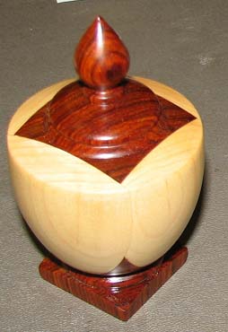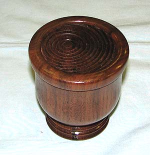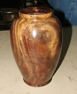 ![]() This urn is made from California Buckeye Burl with an Ebony Finial. It measures 9 X 4 1/4. It is finished with CA glue and Lacquer. |