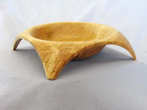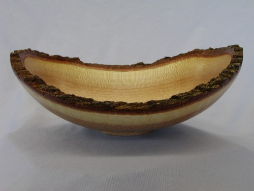 ![]() Silky Oak bowl with Natural Edge 9" Wide x 3" Tall, Turned Green, Oil Finish This piece was turned within days of cutting the tree. After turning, the yellow sapwood dried with distinct vertical striations that are interesting to the touch. |