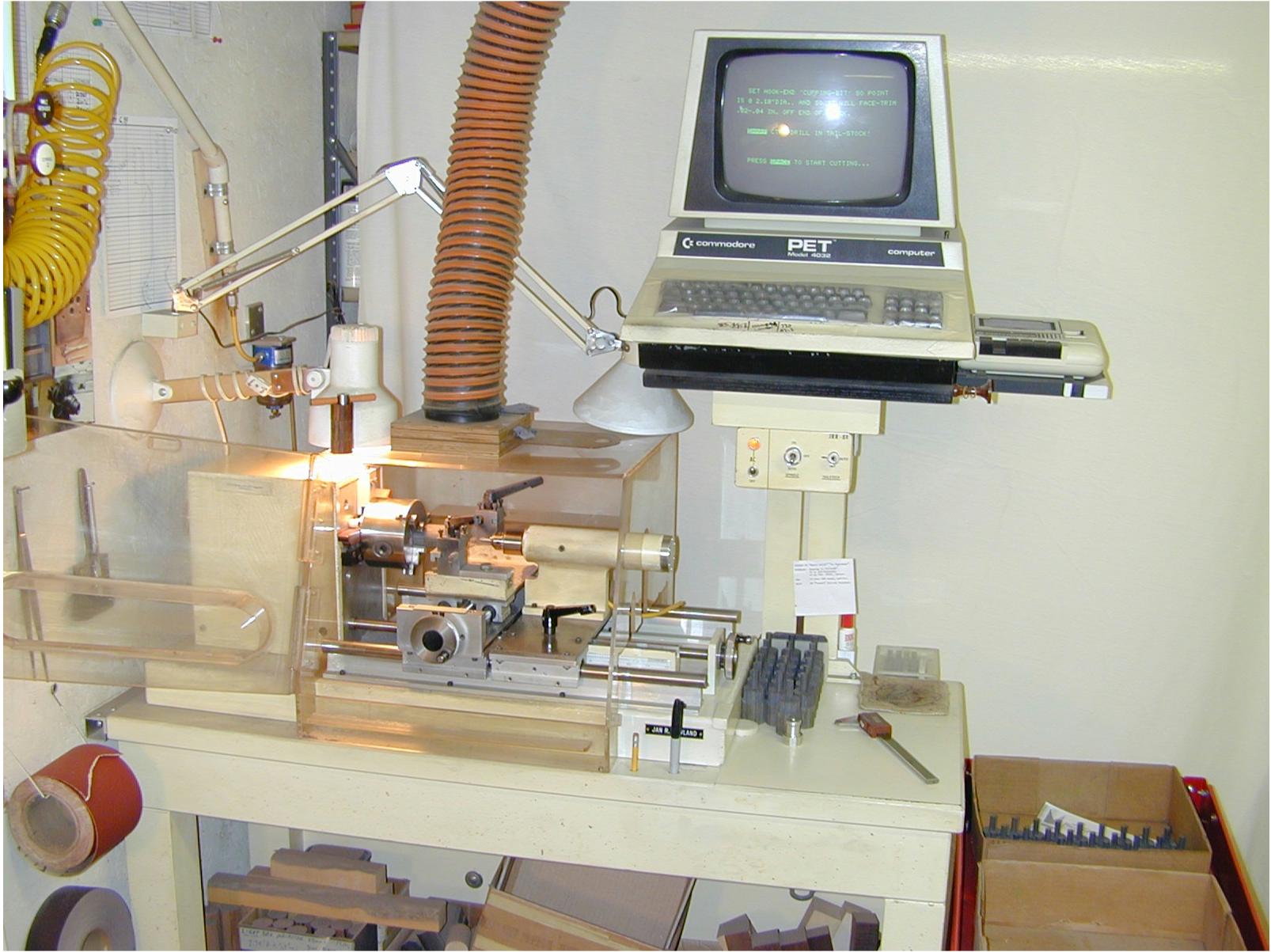 Way back in '76, I had gotten myself my first "personal computer," a Commodore "PET." Long story, I soon got a "better one," leaving that old first one for use with my first attempt at building a machine-tool run by computer. I amazed myself as much as any bystanders, as it worked, and amazingly well, thank you! That machine was still earning a living in a pipeorgan shop when I last saw it in '84, when I found myself unemployed.